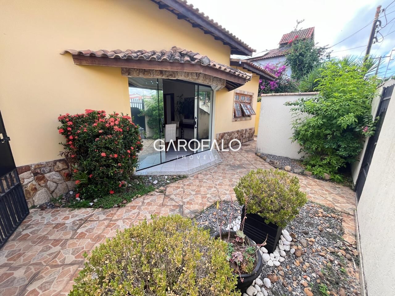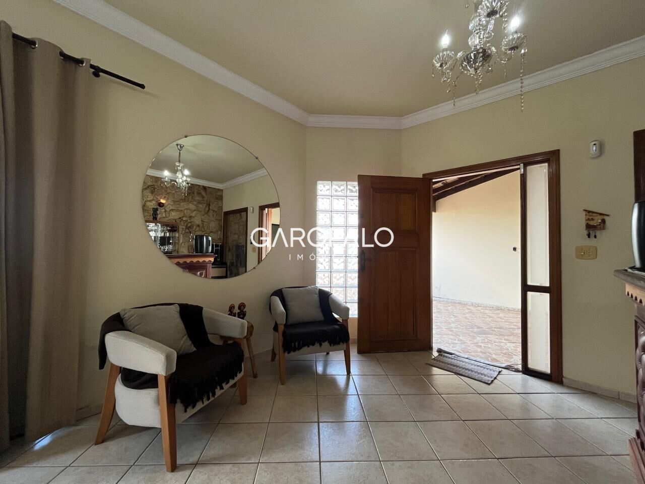 Sala com 3 ambientes, sendo estar, jantar e tv e também um bar na sala, cozinha com armários e dispensa a parte, parte social da casa reservada, com 3 quartos, sendo 1 suíte e 1 wc social. Garagem coberta para 2 carros.