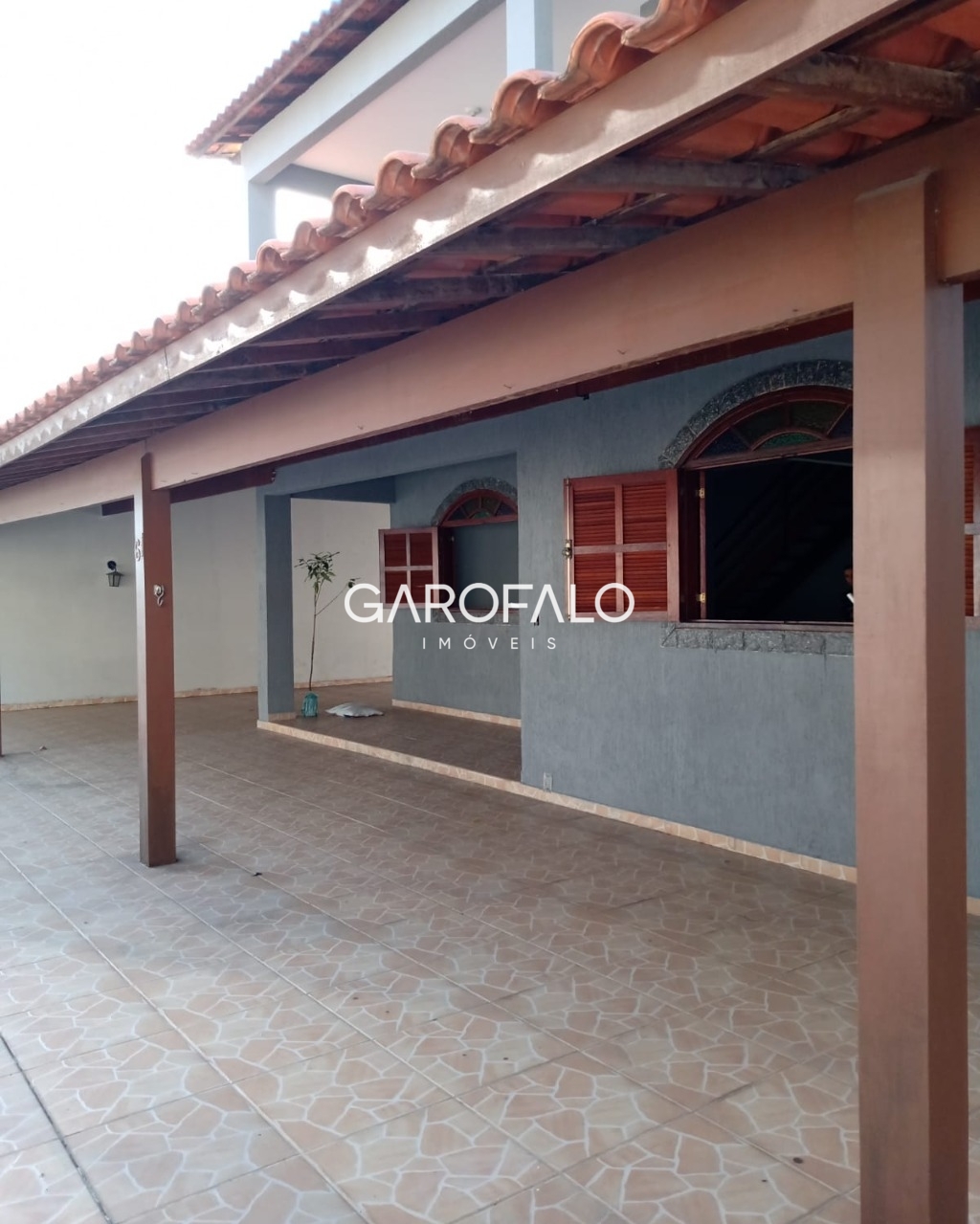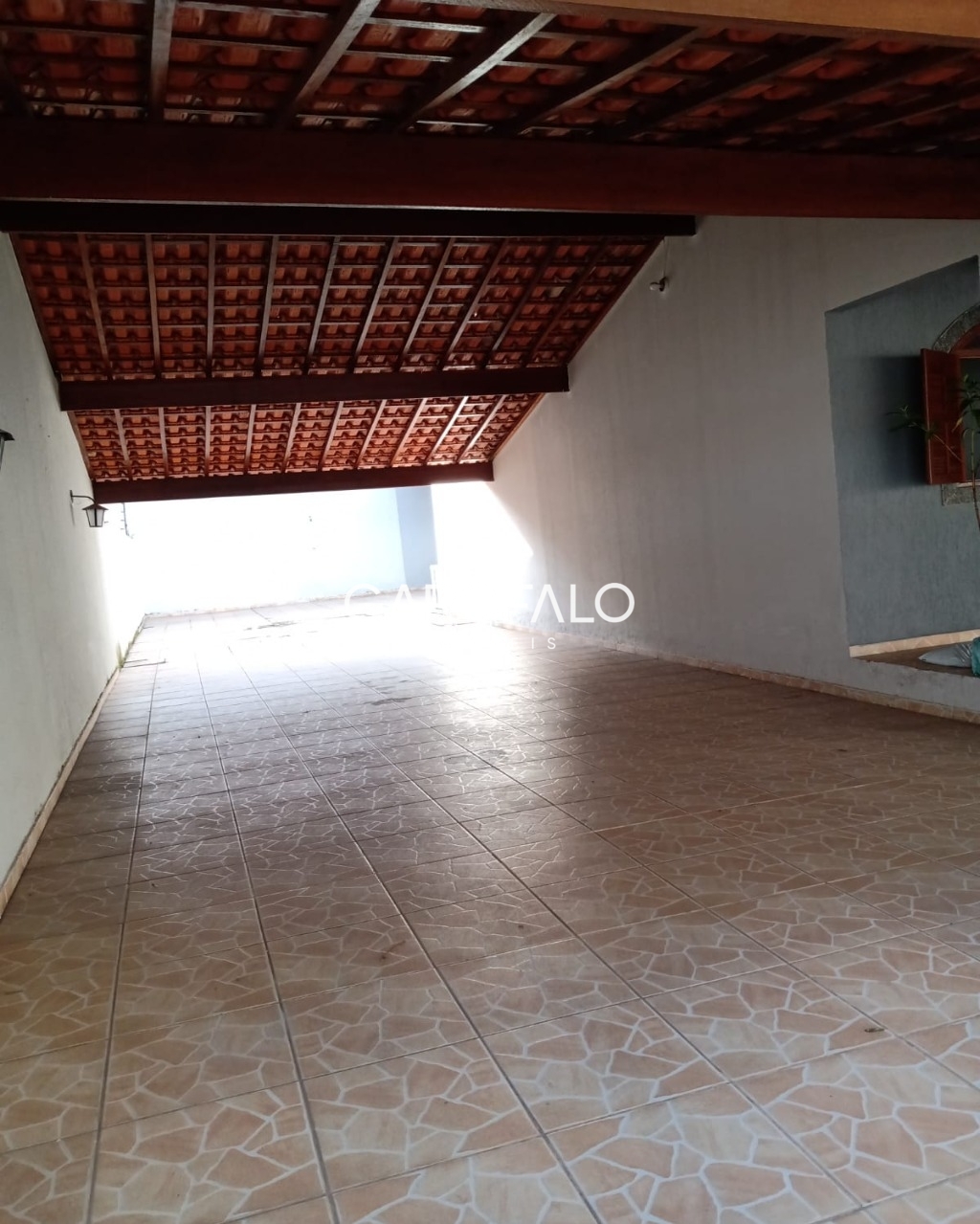 Quintal grande com telhado na frente